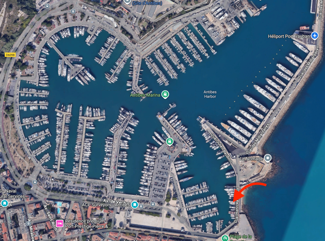 - Emplacement : Quai B1, n°45 – Port Vauban Antibes
